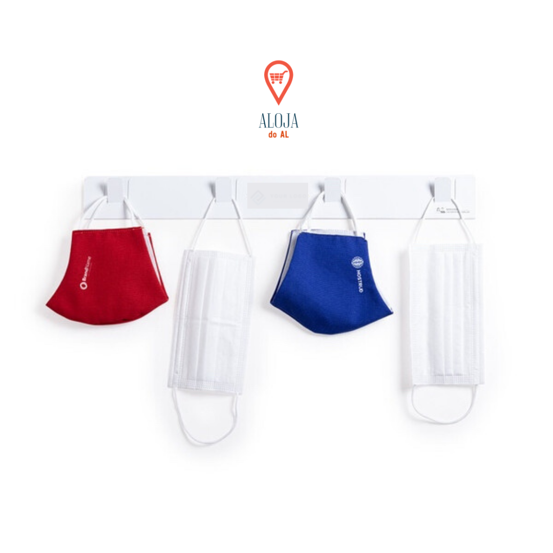 Inclui 4 suportes separados uns dos outros, para pendurar todo o tipo de máscaras e evitar o contacto entre elas. Especialmente desenhado a pensar na hotelaria, mas tem também muita utilidade em sua casa e no escritório.