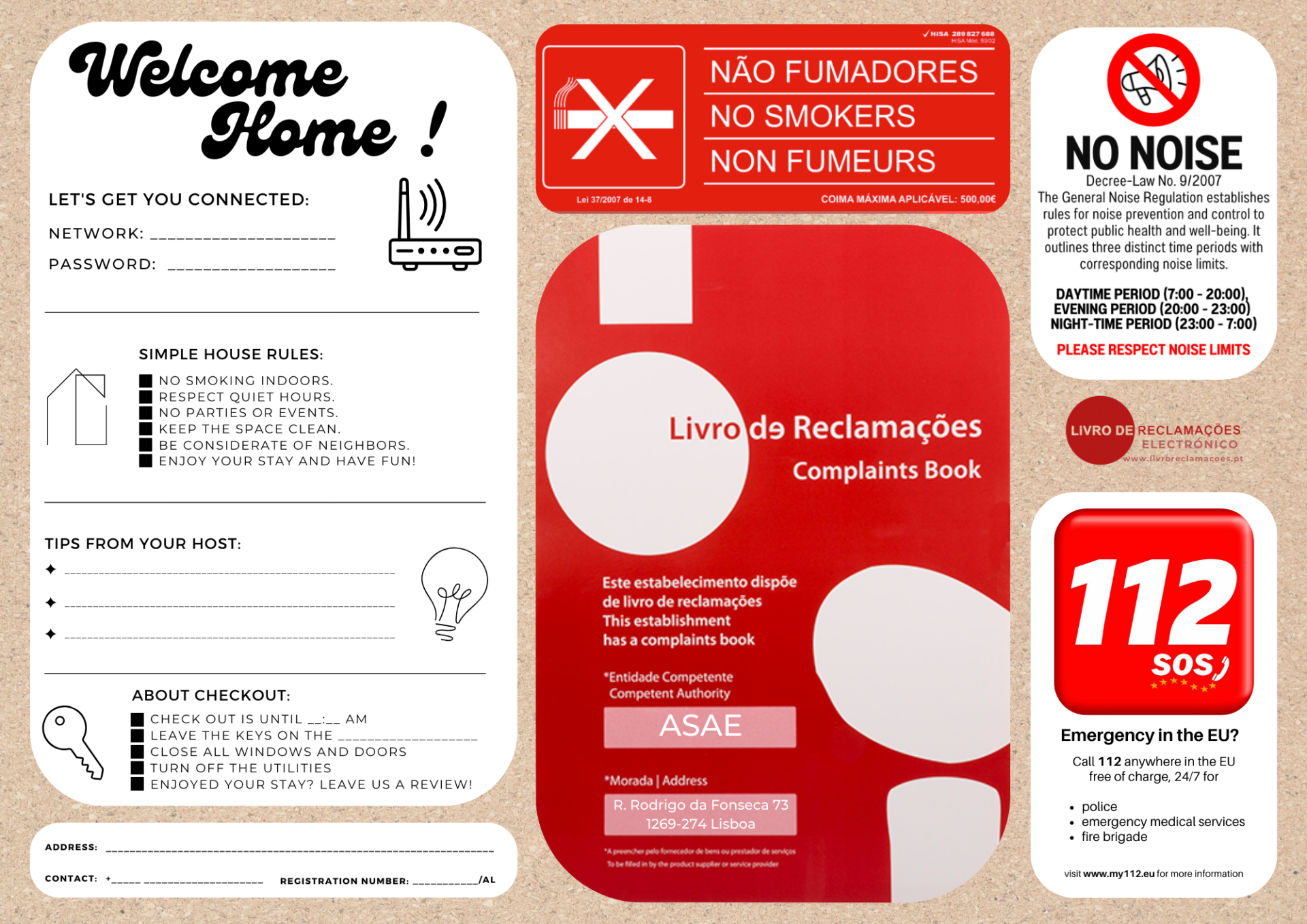 Coloque este poster emoldurado no seu alojamento, irá passar as informações relevantes de uma forma elegante e eficaz.