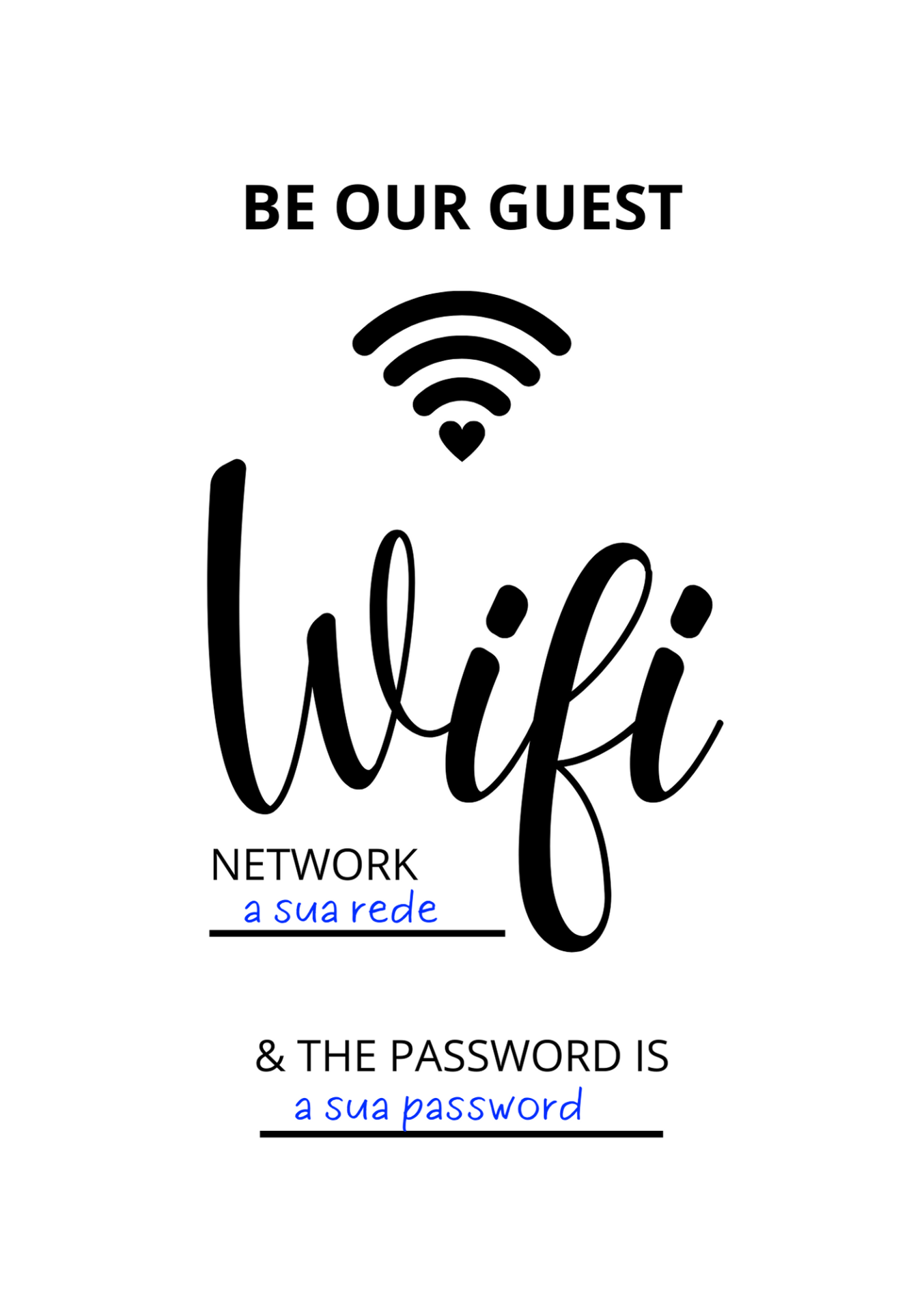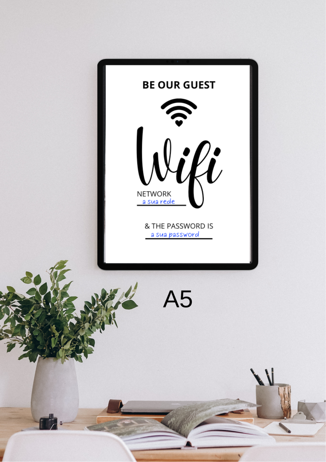 Home POSTERS Poster para dados WIFI (A5) Poster para dados WIFI (A5) 1749 unidades em stock | SKU: WIFI 2,15 € Desconto de %. IVA incluído. Comprar Contactar Adicionar à wishlist Poster tamanho A5 para indicar o nome da rede wifi e a password do seu alojamento Caso pretenda, temos também disponível Plastificação Térmica tamanho A5 AQUI Adicione ao seu carrinho de compras. FORMATO: A5 (21 x 14.8) ORIENTAÇÃO: Vertical PAPEL: Classic gloss - Couché Mate Conheça toda a nossa oferta em Material de Apoio Marca ALOJADOAL Tags POSTERSwifiinternetmaterial gráficoplastificaçãoLIVROSplastificação térmicaplaca ALpersonalizávelpanfletos Características Partilhar